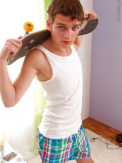 Skater boy wanking after training