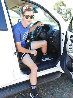 Gorgeous Tim Sitwell busts a nut outdoors.