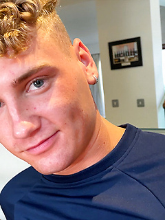 Young Slim & Blond Lad gets his Uncut Cock Wanked & he Shoots Cum all over his Abs!