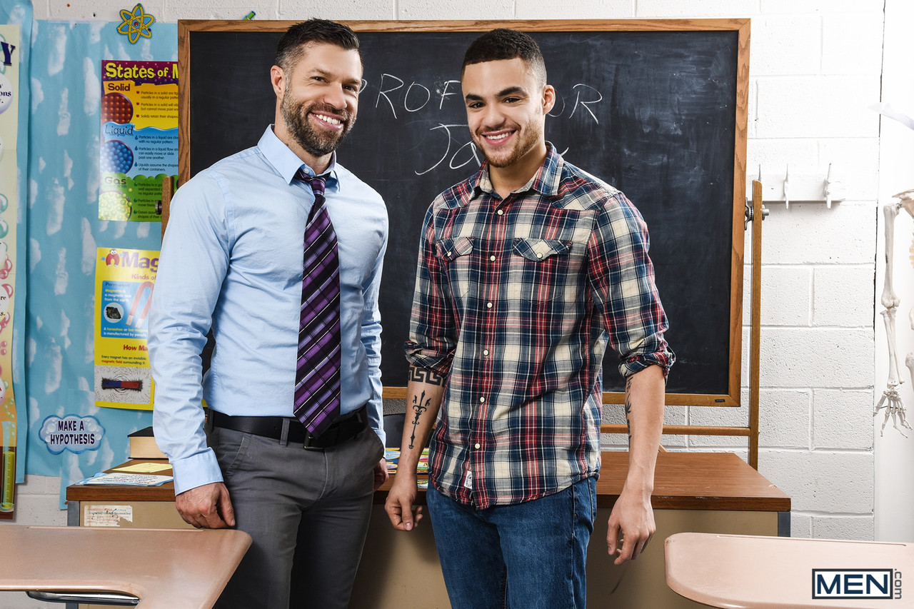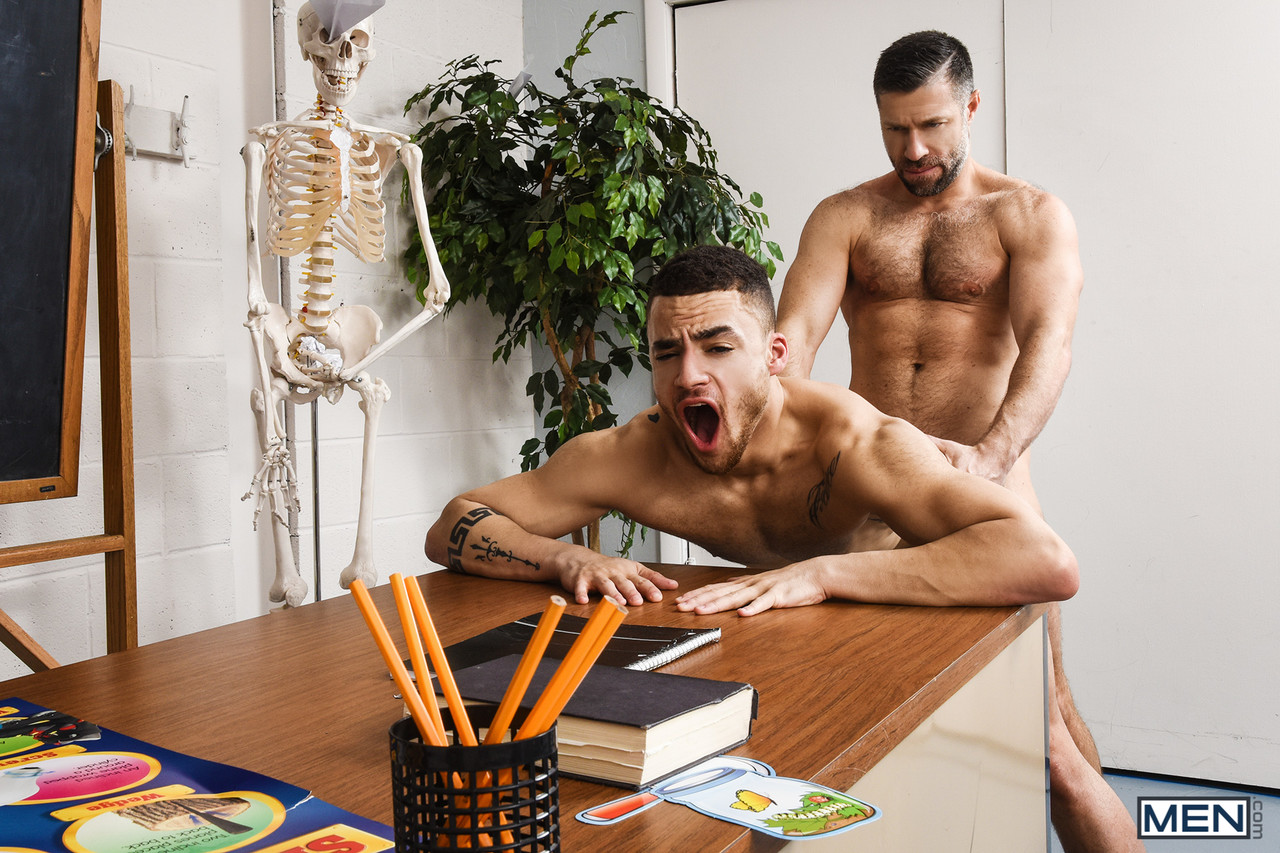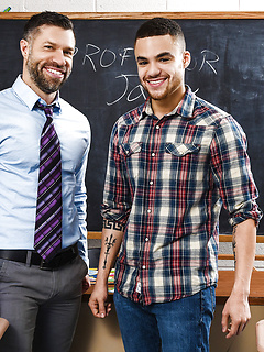 Greying teacher seduces and fucks male student in his classroom