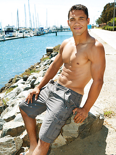 Ripped Murray poses outdoors then goes inside and reveals his big cock