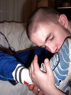 Hung gay Greg Centuri makes a bottom suck his dick and toes before banging him