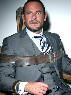 Hary hunk Jason Torres in a torture chair