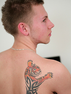 Straight pup Josh showing off his smooth body