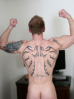 Big muscled jock Nathan shows his perfect tattooed body