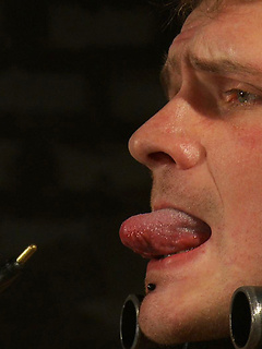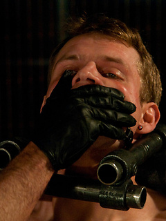 Trent Diesel and Leo Forte are kept in metal bondage and fucked during a live shoot.