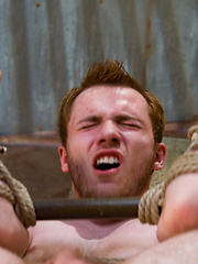 Two studly slaves gets tied up, used and abused by Christian Wilde during a live show.