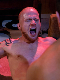 Phenix Saint fucks Luke Riley while Luke is tied up and suspended from the ceiling fan.