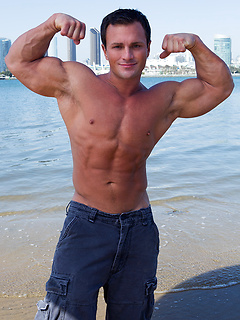 Nice looking athlete Clint posing naked and play with his meat