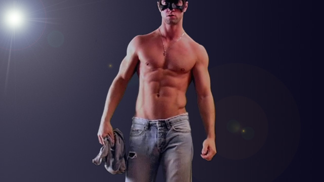 Hot athlete Deron shows his sixpack and strokes dick