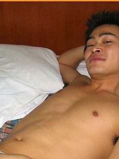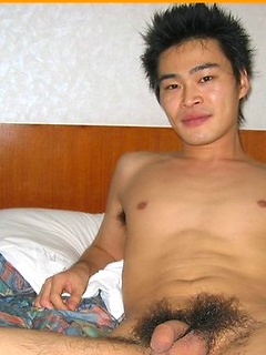 Hot Japanese guy with a nice body shows off his big cock