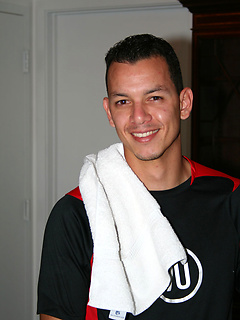 Hot latin hunk Andre Cruz jacking off his long cock