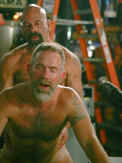 Muscle men in vintage orgy scene