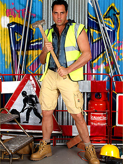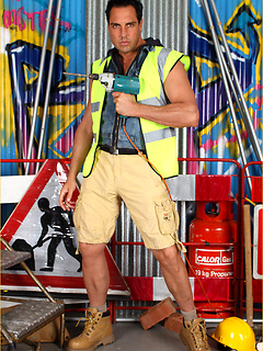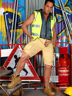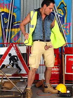 Marcello dressed as a sexy work man and playing with his dick