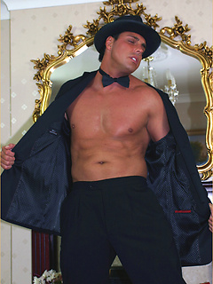 Marcello performs a sexy striptease with a messy cumshot payoff