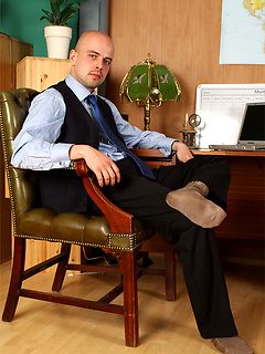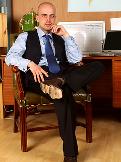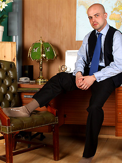 Horny stud plays with his hard cock before a job interview