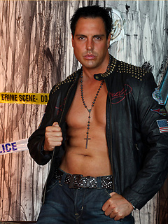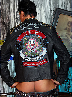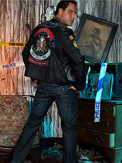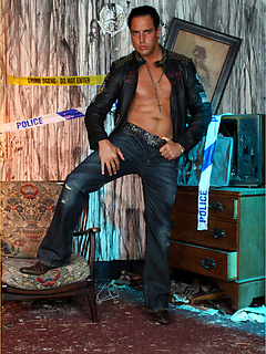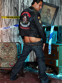 Marcello the hunk wearing tight leather and masturbating