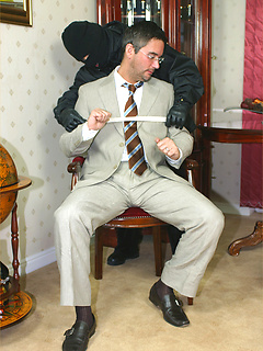 Hunk tied to a chair and tickled until he plays with his cock