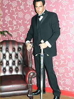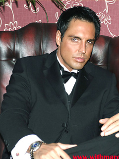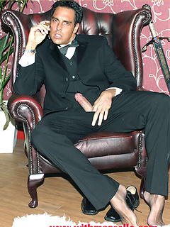Marcello smoking a cigar in his tuxedo and then rubbing his hard dick