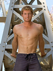 Muscle hunk Brett shows his perfect sculpted body outdoors