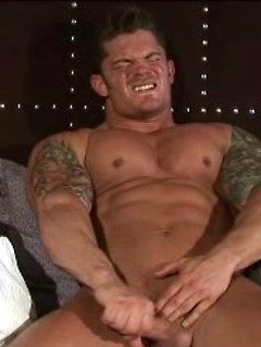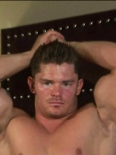 Mitchel Rock touch his muscled body and fat dick on a bed