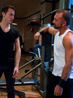 A sexy stud endures a brutal bondage workout including flogging, electro, and a hard suspension fuck from a sadistic trainer with an enormous cock.