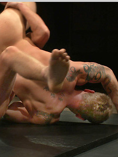 Big-dicked muscle hunks with perfectly chiseled bodies fight to dominate each another on the mat with winner fucking the loser till he begs for mercy.