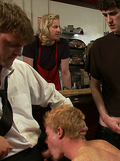A coffee shop stud is humiliated, whipped and fucked for being an asshole.