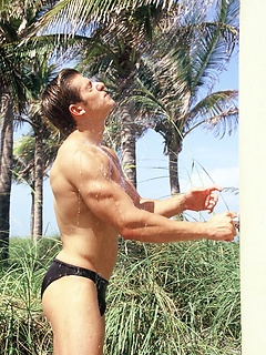 Sexy Zack Johnathan shows off his body on the beach