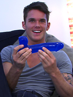 Straight Young Footballer Jay Hall Slides Up and Down on the Massive Blue Dildo