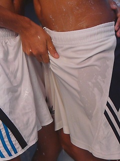 Ray and Nick wet the bed while they get soaked during a horny bareback piss session