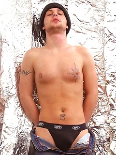 Cute twink with tats and facial hair shoots hot load.
