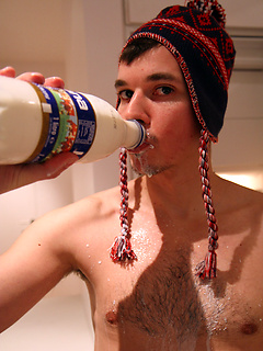 Milk bath in the kitchen with my mate Astroboi