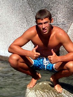Ruggerbugger has horny private photos of French wrestler Victor Biscioni hanging with his buddies and modeling with his ass exposed.