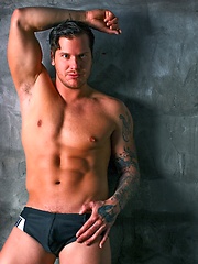Muscle athlete Darius strokes dick and shows his perect muscle body