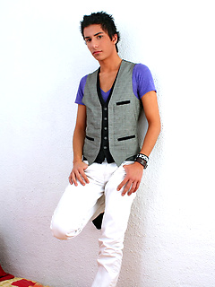 Brunette hottie Benjamin London shows his boner