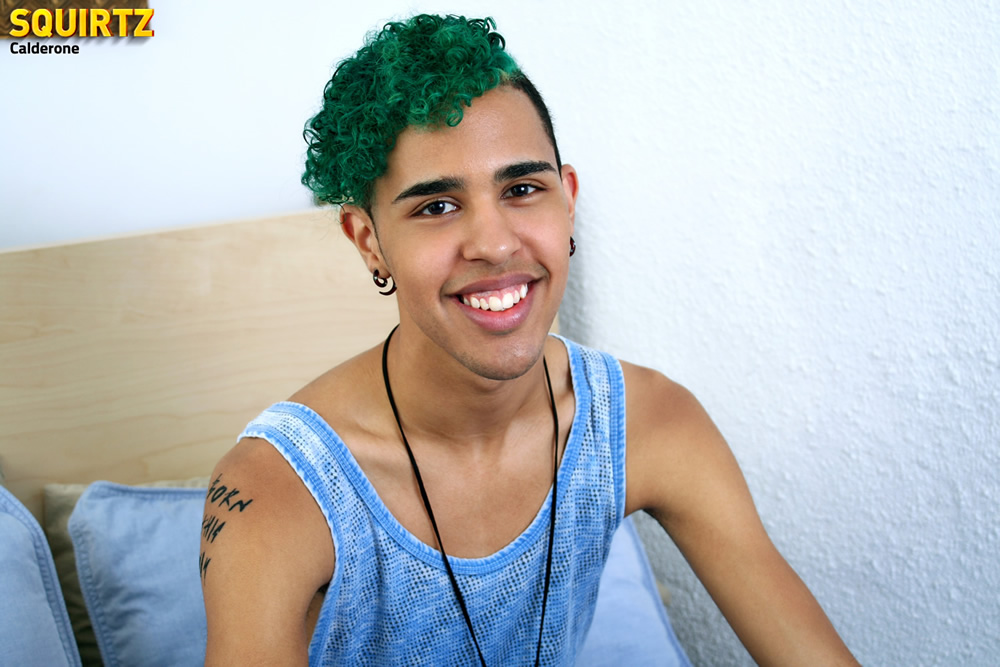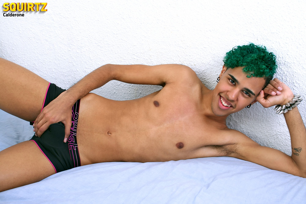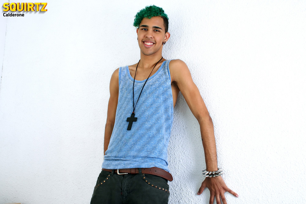 Exotic boy Calderone shows his big uncut cock