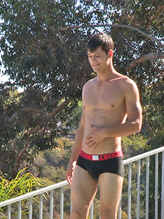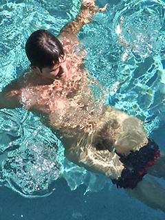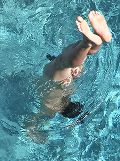 Keith sweeming in a pool and jacking off dick after