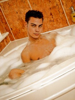 Sexy twink Tino takes a bath and then a shower and shows off his long boy-cock.