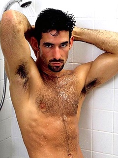 Muscular attractive hunk with a hot furry chest and nice cock.