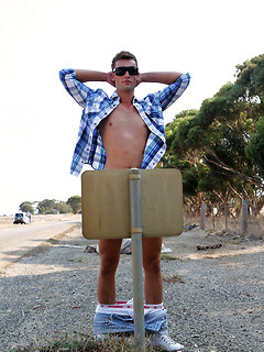 Aussie boy Lincoln Ashby stops for a roadside wank