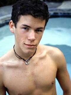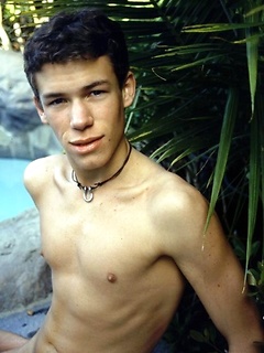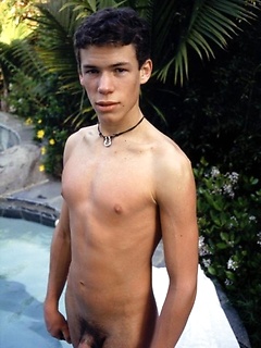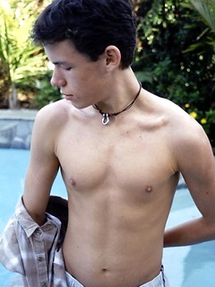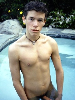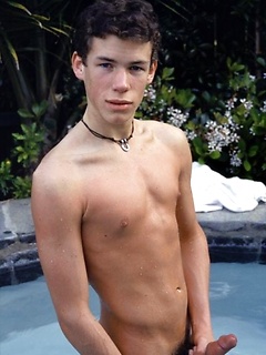 Cute twink blows a hot creamy load all over himself pool side.