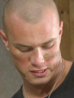 The soldier starts to milk the young reporter. Then he commands him to jerk. He kisses him and treats him like a girl.