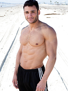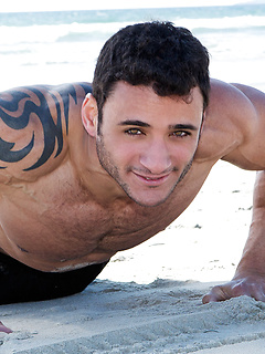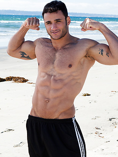 Brunette hottie Rocco shows his muscle body and cock