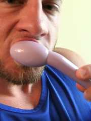 Dark haired gay Randy Scott wanking off his dick