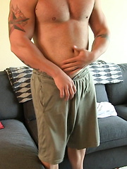 Beefy boy Merrill wanking off his dick