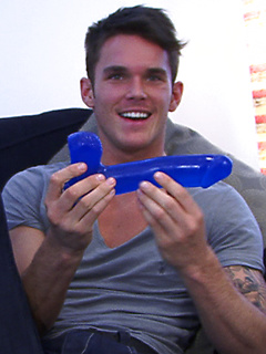 Straight Young Footballer Jay Hall Slides Up & Down on the Massive Blue Dildo
