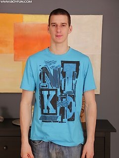Tall lean boy Jaylon Harris tugs on his uncut cock.
