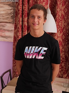 Cute twink Thomas Swings busts a big nut over his tummy.