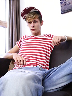 Tattooed Connor Levi busts a big nut onto his stomach.